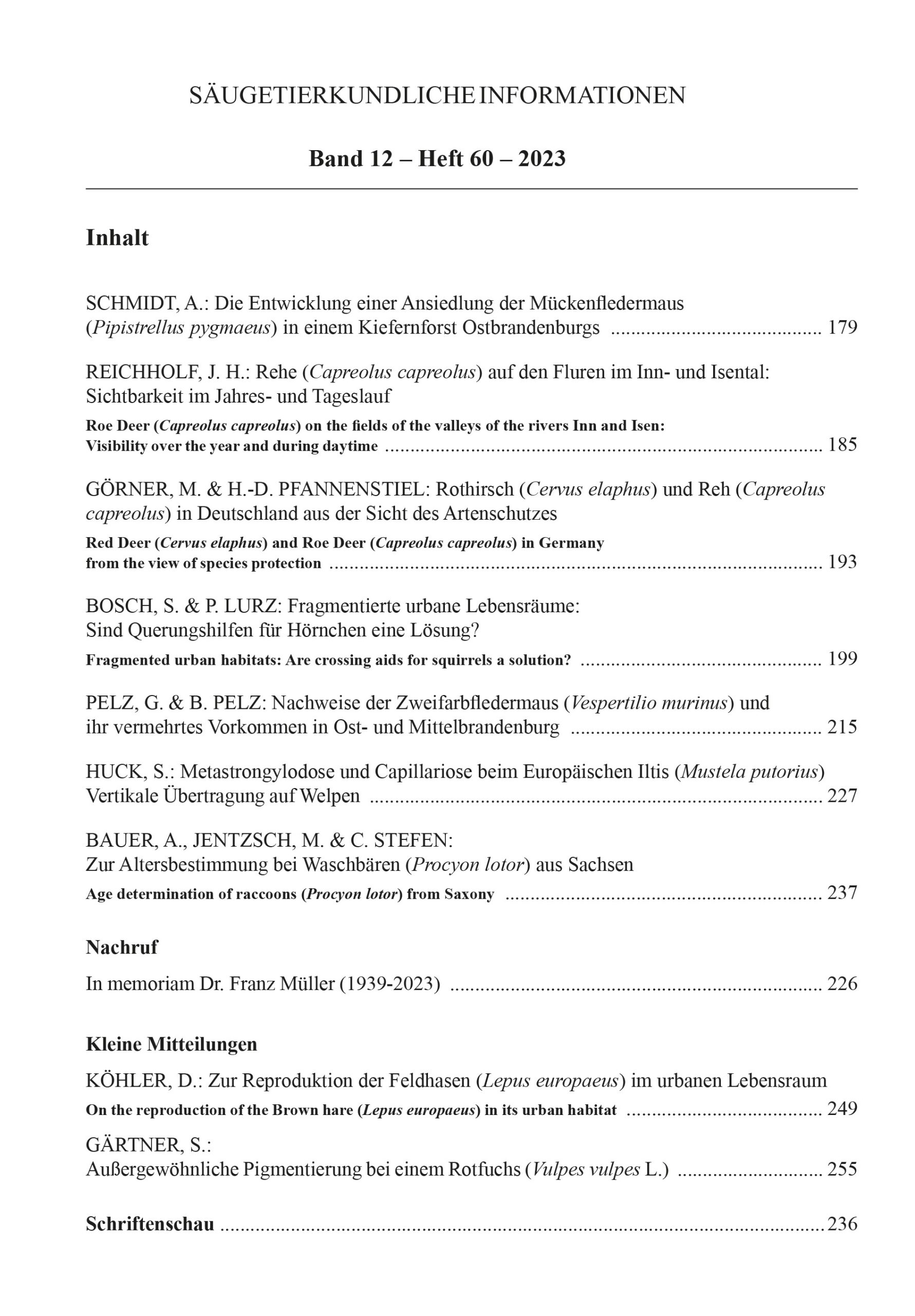 Säugetierkundliche Informationen – Band 12, Heft 60, 2023