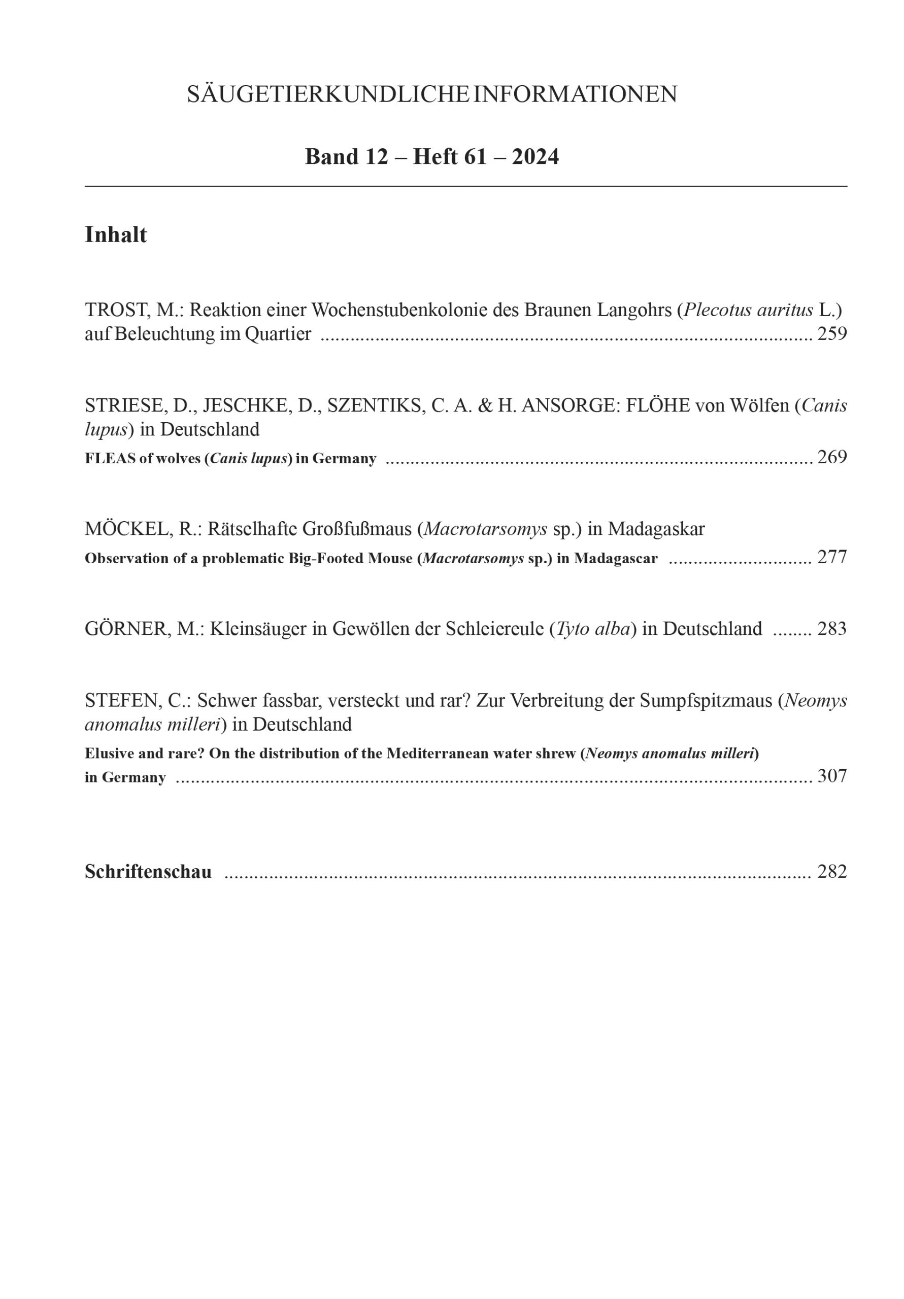 Säugetierkundliche Informationen – Band 12, Heft 61, 2024