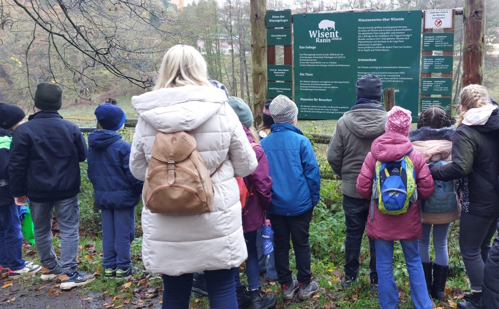 Im Mai wurden unsere beiden Wisentkälber Brani und Branisa ein Jahr alt. Zur Feier gratulierte auch die Löwenklasse der Grundschule „Am Rosenhügel“ aus Pößneck, deren